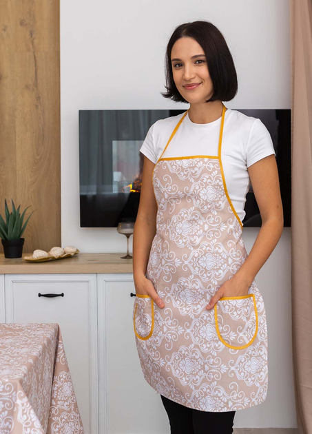 Фартух бавовняний "Вензель" (бежевий) 75х55 см