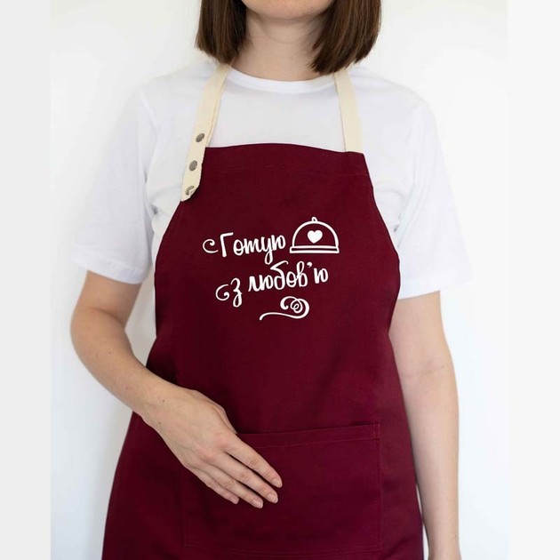 Прикольний фартух для кухні з написом "Готую з любов'ю №3" бордовий