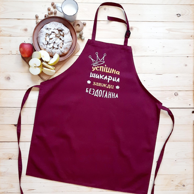 Фартух кухонний жіночий з вишивкою «Успішна, шикарна» бордовий (0478)
