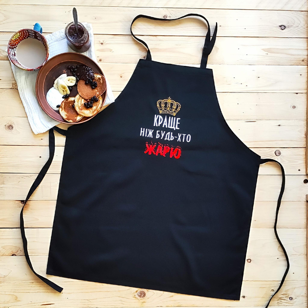 Фартух кухонний чоловічий з вишивкою «Краще ніж будь-хто жарю» чорний (0472)