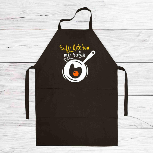 Фартух чорний кухонний з принтом "My kitchen my rules"