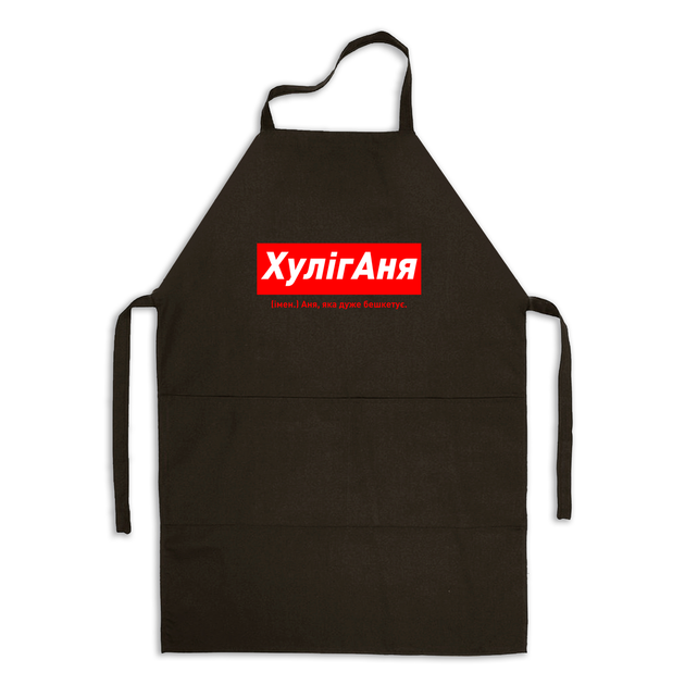 Фартух чорний габардиновий іменний з написом «ХулігАня. Аня яка дуже бешкетує»