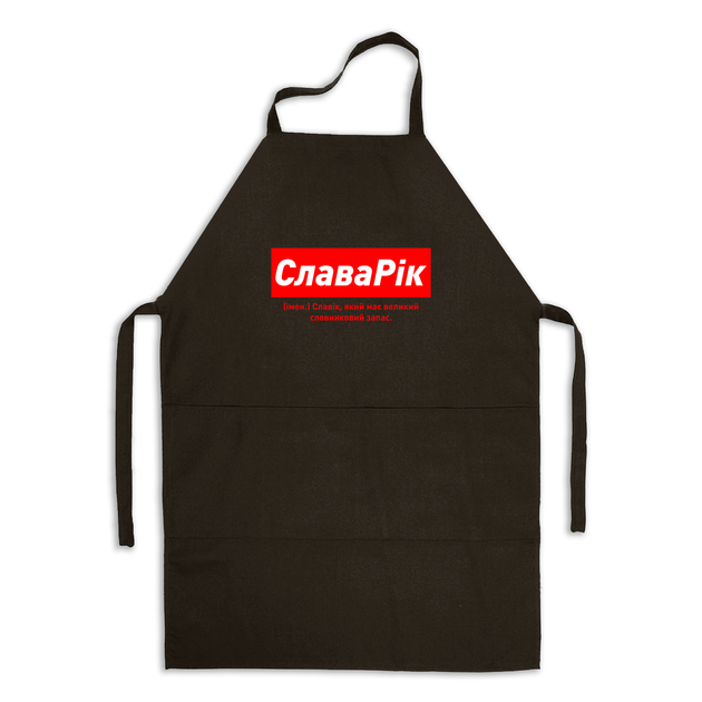 Фартух чорний габардиновий іменний з написом «СлаваРік. Славік який має великий словниковий запас»