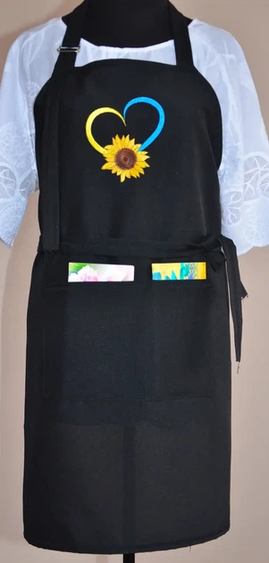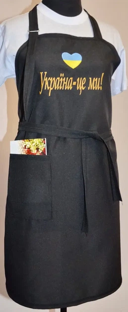 Фартух кухонний для повара продавця офіціанта з вишивкою чорний