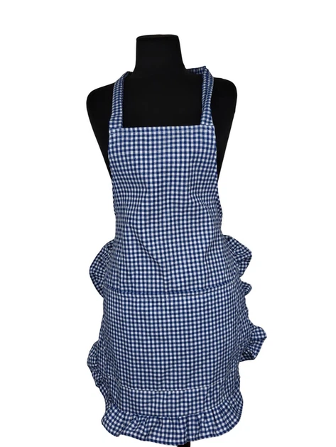 Кухонний фартух блакитно-білий в клітинку з кишенями
