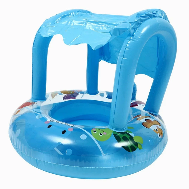 Дитячий надувний круг 70см з навісом Кит синій для плавання