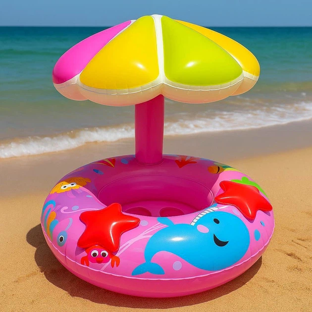 Дитячий надувний круг 78 см рожевий із парасолькою для плавання модель SW-7