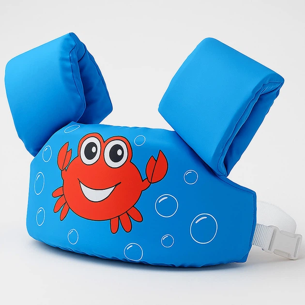 Дитячий жилет для плавання з нарукавниками 2-6 років 48х14х23 см синій з крабом