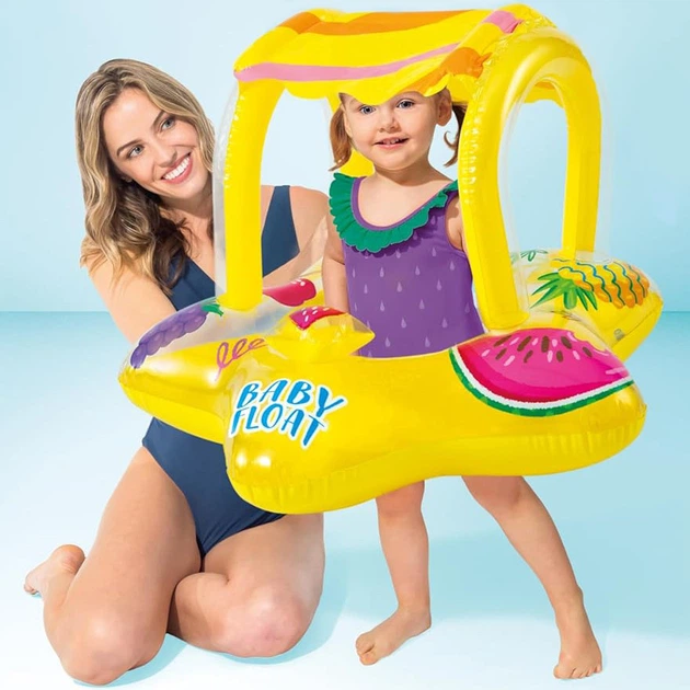 Круг надувний пліт із вирізами для ніг і навісом Intex 1-2 роки