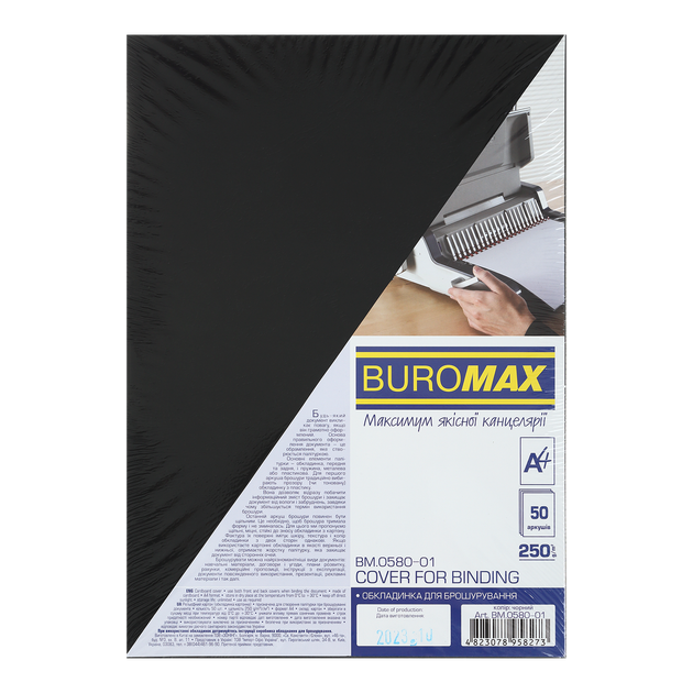 Обкладинки для брошурування BuroMax А4 картонні фактурні чорні 250 г/м2 50 шт (BM.0580-01)