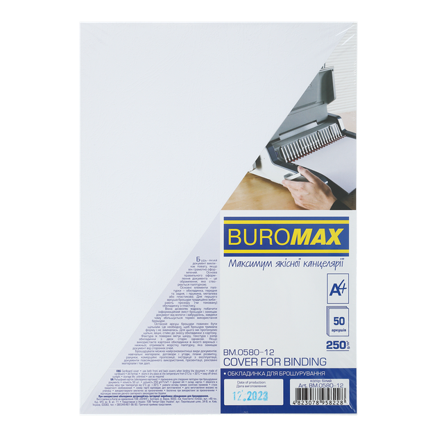 Обкладинка для палітурки, А4, картон 250г/м2, "під шкіру", БІЛА, 50шт. в упак., BM.0580-12