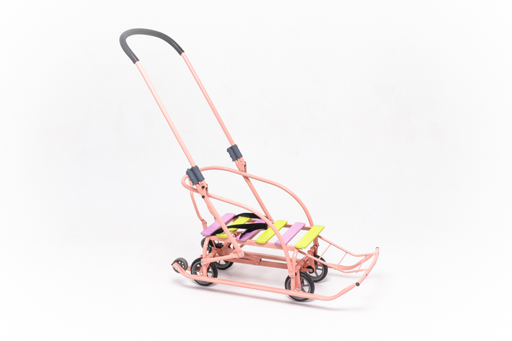 Санки-трансформер дитячі на колесах «Мрія» 2025 ТМ Veloz Пудровий Рейки Рожево-лаймові