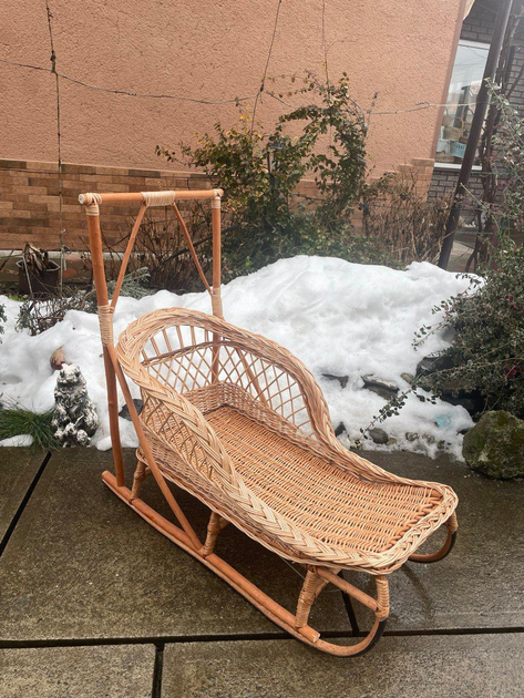 Санки плетені з лози з металевим каркасом та сірою подушкою (00177)