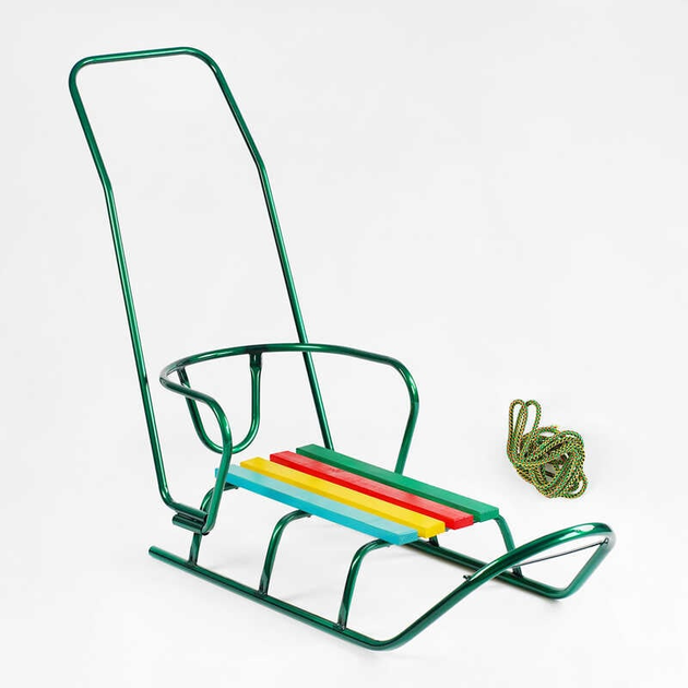 Санки "люкс класик"-з ручкою круглі полози (1) колір зелений