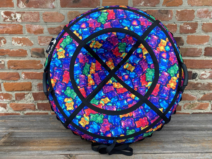 Надувні санки тюбінг ватрушка з камерою 1.2 метри якісні + сумка-бананка в комплекті Ведмедики желейки 2025