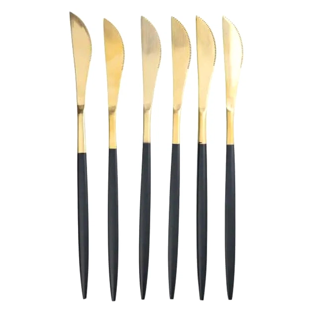 Набір столових ножів 6 шт з нержавіючої сталі 22,5 см чорні із золотом для сервірування столу сервірувальні ножі (524309)