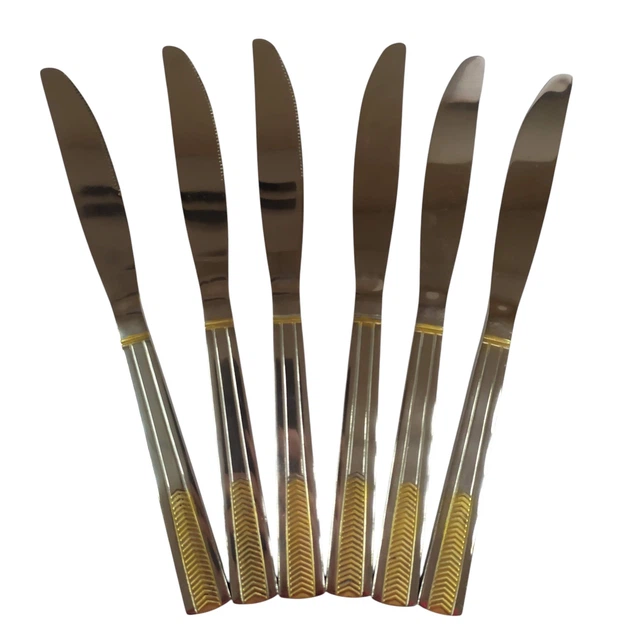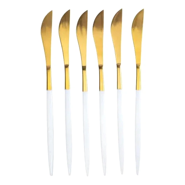 Набір столових ножів 6 штук з нержавіючої сталі 22,5 см білі із золотом для сервірування столу сервірувальні ножі (524314)