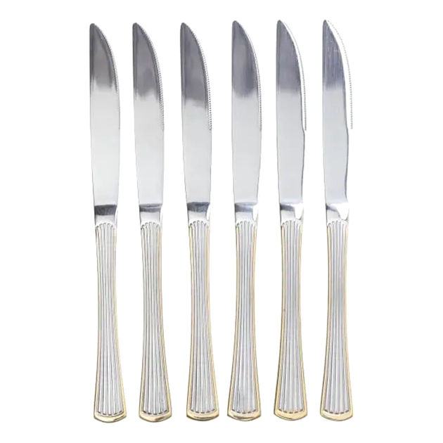 Набір столових ножів з нержавіючої сталі 6 штук срібло з золотом