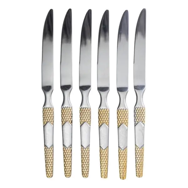 Набір столових ножів 6 штук ножі сервірувальні з нержавіючої сталі 22.7 см Срібло з золотом HP-20-36