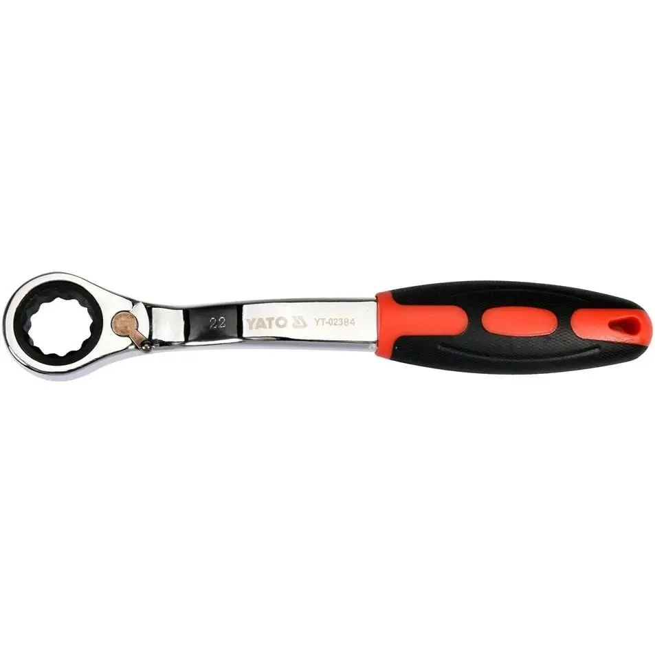 Ключ накидний вигнутий з тріщаткою Yato М22 HRC 42-48 Cr-V з прогумованою ергономічною ручкою (YT-02384)