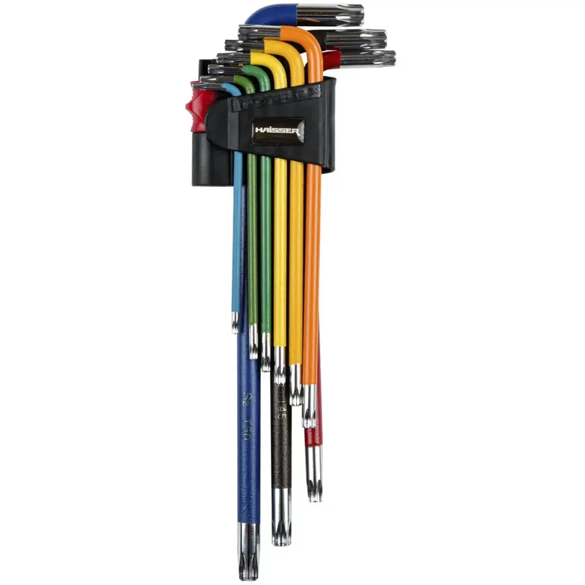 Набір Г-подібних ключів Torx Haisser T10-50 екстра-довгих кольорових з отвором 9 шт. (109344)