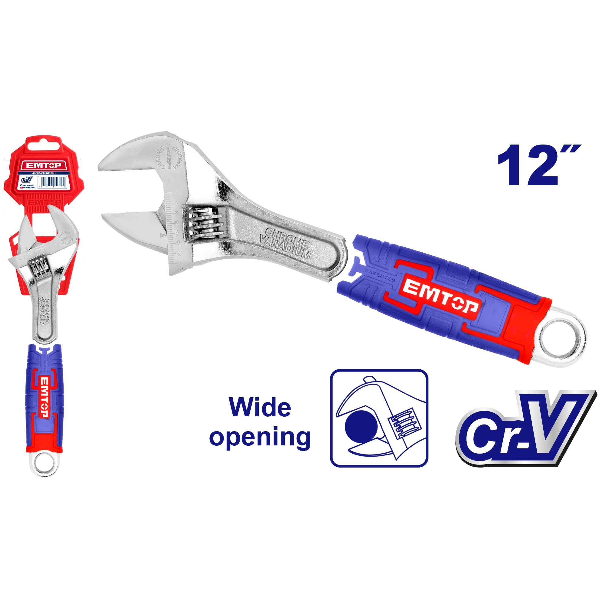 - Довжина: 300 мм (12 дюймів) - Матеріал: CrV - Регульований розмір затискача: 0-41 мм - Широкий отвір: так - Триколірна м'яка ручка: так - Вага брутто: 0,93 кг