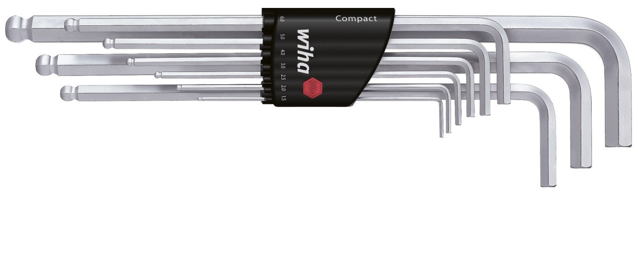 Набір шестигранних штифтових ключів 9 штук зі сферичною головкою у тримачі Compact Wiha 01418