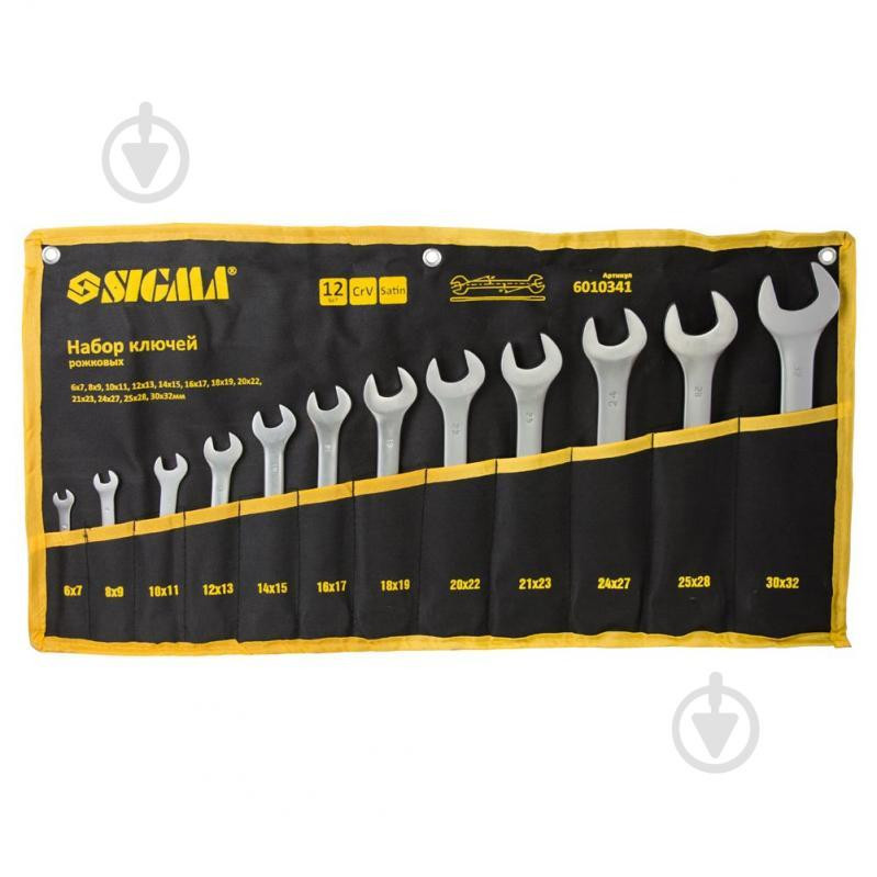 Ключ Sigma набір ріжкових 12шт 6-32мм CrV satine, тк чохол (6010341) 6010341