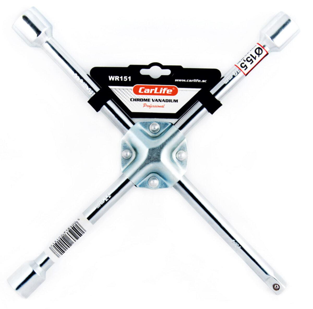 Ключ балонний для коліс універсальний професійний 17; 19; 21; 1/2 мм. - хрестоподібний з центральною пластиною CarLife (WR15