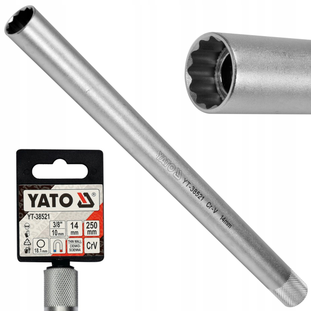 Ключ для свічок ЯТО: квадрат-3/8 ", 14 мм, L = 250 мм, Cr-V
