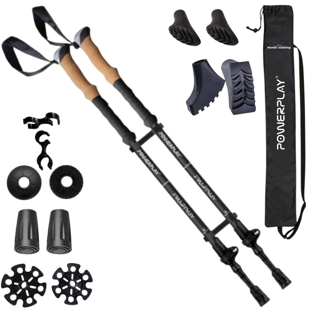 Трекінгові палиці PowerPlay 9110 Friluftsliv Black/White 80-135 см (пара) + 2-ві пари чобітків + чохол (PP9110Friluftsliv)