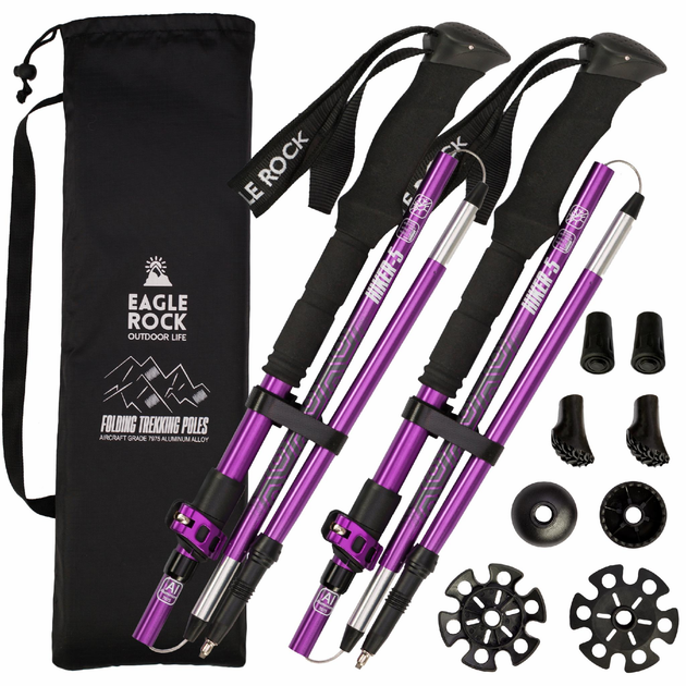 Туристичні палиці 5 секційні для трекінгу Eagle Rock фіолетові похідні для гір, для зими