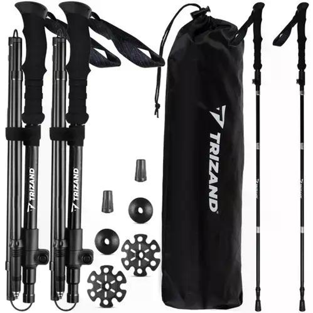 Трекінгові палиці Trizand СР24396, складані, 2 шт з аксесуарами, чорні