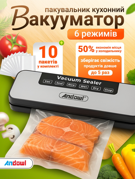 Вакууматор кухонний 6в1 + зварювач без вакууму автоматичний домашній 6 режимів Andowl Q-Z400X1 побутова машина для вакуумної