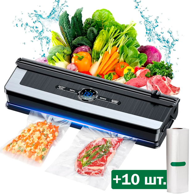 Вакууматор +10 пакетів Вакуумний пакувальник ZK-8876 з вбудованим різаком і дисплеєм