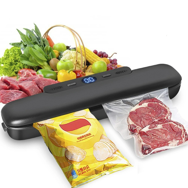 Вакууматор / вакуумний пакувальник кухонний для продуктів +10 пакетів Z-21 чорний (LB-141346)