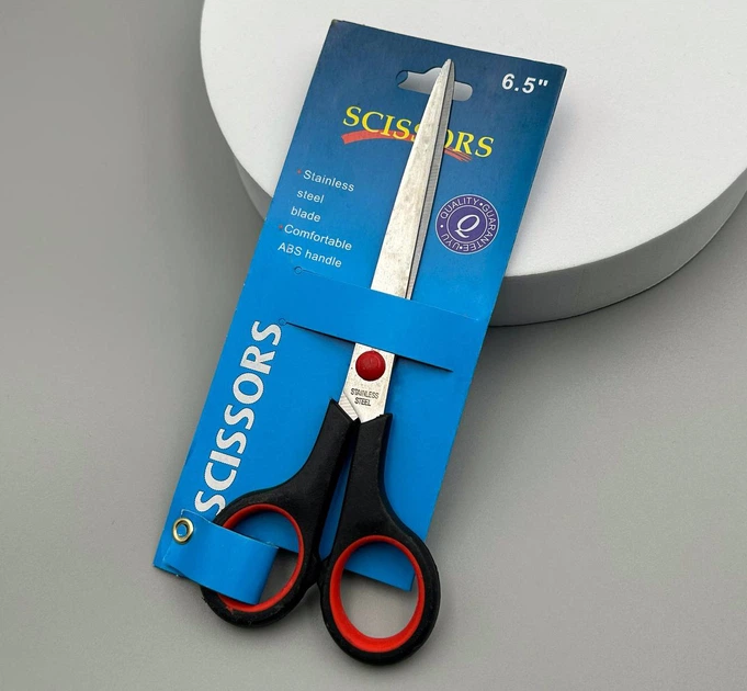 Ножиці канцелярські / Пластикова ручка / 6,5 см / Чорний з червоним
