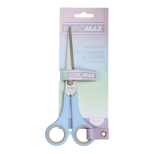 Ножиці PASTEL, 170 мм, круглі ручки, з блак.гум.вставками, блакитний
