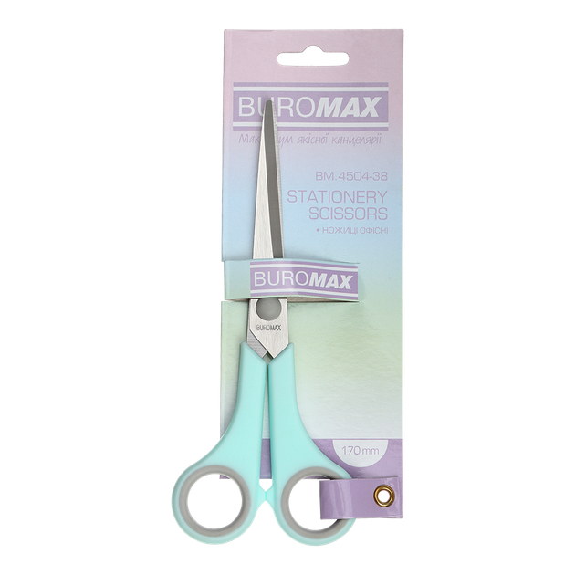 Ножиці PASTEL, 170 мм, круглі ручки, с.гум м'ятний.вставками, м'ятні.