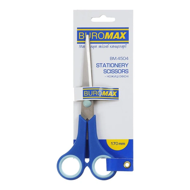 Ножиці з гумовими вставками Buromax 170 мм сині (BM.4504)