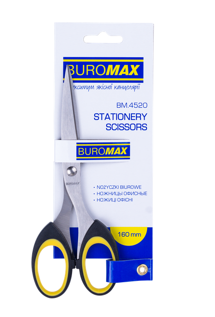 Ножиці суцільнометалеві з гумовими вставками Buromax 160 мм чорні (BM.4520)