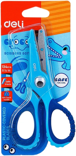 Ножиці дитячі Deli 6071E Кроко безпечні Блакитні 13.4 см (2252510308017)