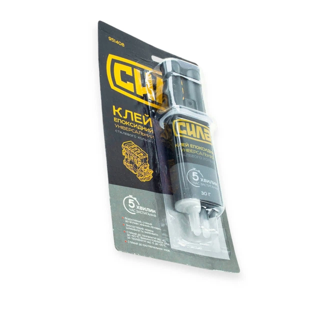 Клей двокомпонентний епоксидний Сила 30g універсальний (шприц) сірий