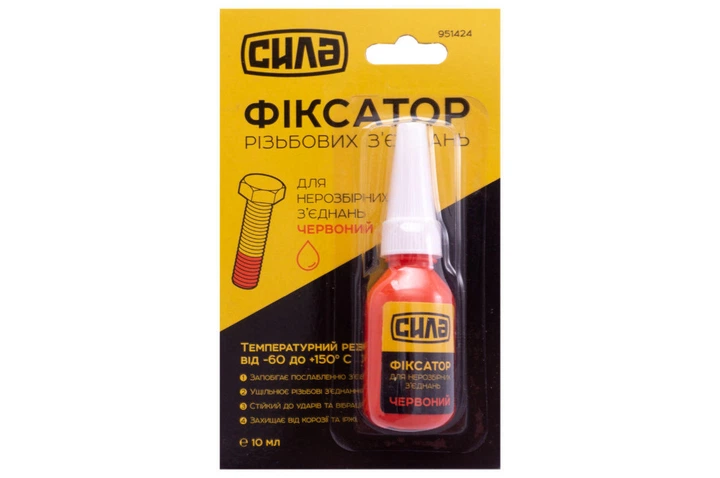 Фіксатор різьблення для нерозбірних з'єднань Сила - 10г червоний 1 шт.