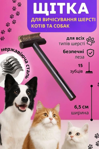Щітка для вичісування шерсті котів і собак 15 зубців, нержавіюча сталь
