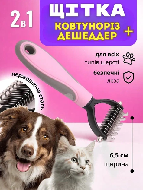 Щітка 2в1 - дешеддер та ковтуноріз для собак і котів Рожевий