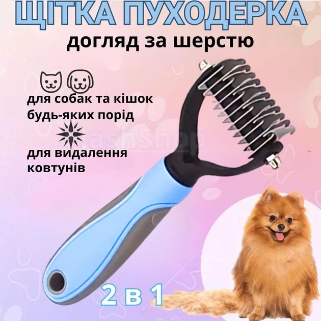 Щітка пуходерка для вичісування шерсті котів і собак самоочищається + двостороння насадка Розмір 9,518 см