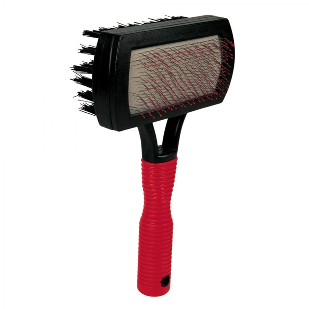 Пуходерка двостороння для догляду за вовною та підшерстком у собак Trixie 17 х 10 см Чорно-червоний (4011905023069)