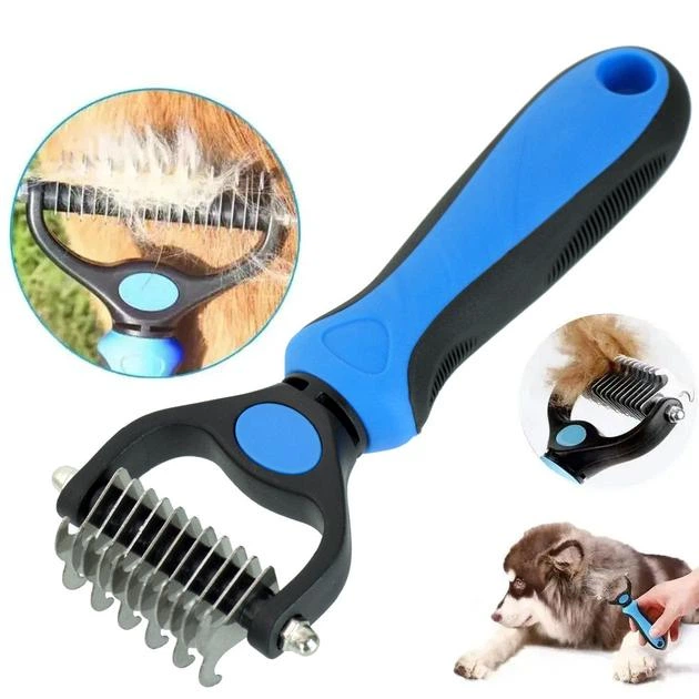 Колотуноріз і дешеддер 2 в 1 для котів і собак, двосторонній гребінець, блакитний