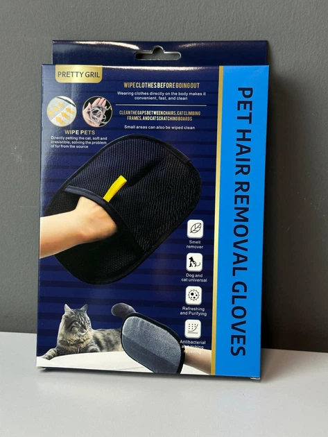 Рукавичка для видалення шерсті хатніх тварин з одягу 23х16.5 см Чорна